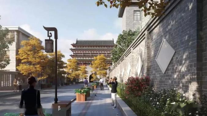 鐘鼓樓復建及周邊地段:復建鼓樓、鐘樓,與唱經樓呼應,重現鐘鼓樓地段的精神性地標,并標示府城歷史;對鐘樓街沿街建筑分類改造,恢復歷史建筑原貌,協調普通商業建筑立面風格與整體風貌;以修繕歷史建筑和文保單位為抓手,優化街區內部結構和街巷體系,提升街區整體段環境。