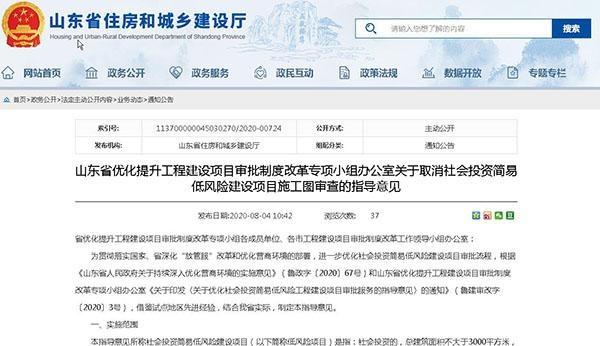 據(jù)山東省住房和城鄉(xiāng)建設廳網(wǎng)站,近日,山東省優(yōu)化提升工程建設項目審批制度改革專項小組辦公室發(fā)布《關于取消社會投資簡易低風險建設項目施工圖審查的指導意見》,內容如下。
