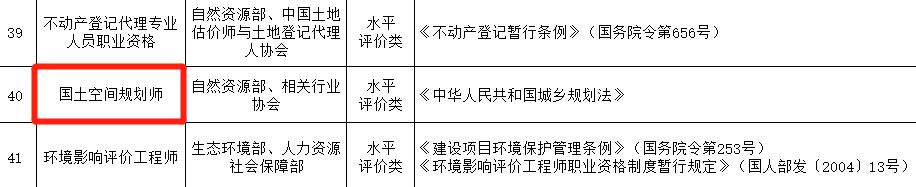 * 注2:原注冊(cè)城鄉(xiāng)規(guī)劃師調(diào)整為水平評(píng)價(jià)類,更名為“國(guó)土空間規(guī)劃師”;原注冊(cè)設(shè)備監(jiān)理師調(diào)整為水平評(píng)價(jià)類,更名為“設(shè)備監(jiān)理師”;原土地登記代理專業(yè)人員職業(yè)資格更名為“不動(dòng)產(chǎn)登記代理專業(yè)人員職業(yè)資格”;原專業(yè)代理人更名為“專業(yè)代理師”。